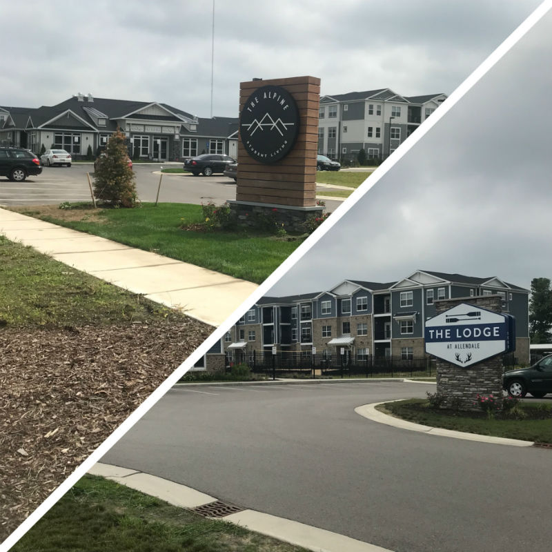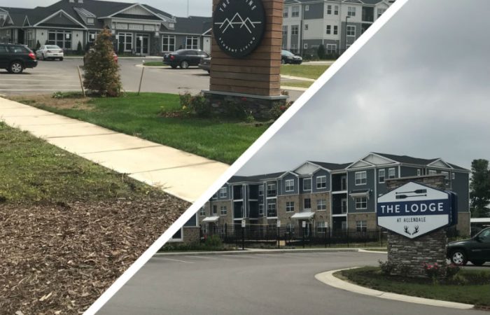Although not directly affiliated with Grand Valley State University, The Lodge and Alpine Apartments just west of GVSU’s Allendale campus are geared towards housing for students. The entire project will cover nearly 50 acres of former farmland, with the second of three phases wrapping up at the end of the summer. During Phase One, Thornapple Excavating constructed a county road that extended W Campus Drive to connect it to Pierce Street.