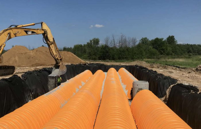 Grand Hospitality Management is a hotel development and management company that has set a goal to start a new hotel every month as they add to their current portfolio of 15 locations. Through Pel Construction, Thornapple Excavating has been fortunate enough to work on almost ten new projects for GHM with more coming in the near future. This most recent project will require installing a massive 5,400-square-foot ADS Storm Tech retention system under the parking lot.